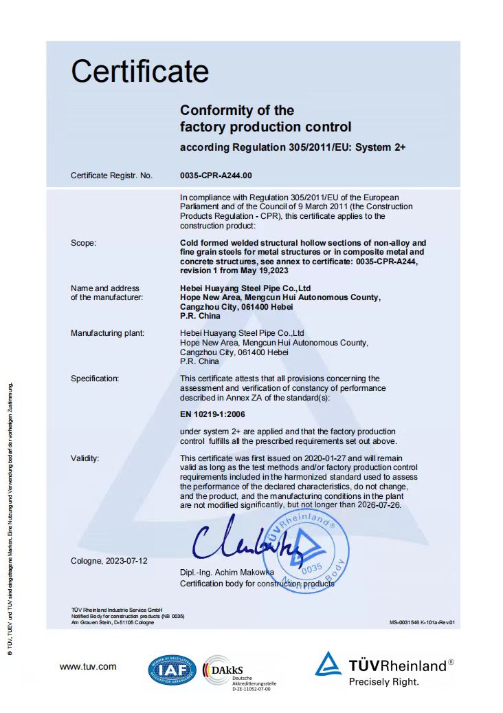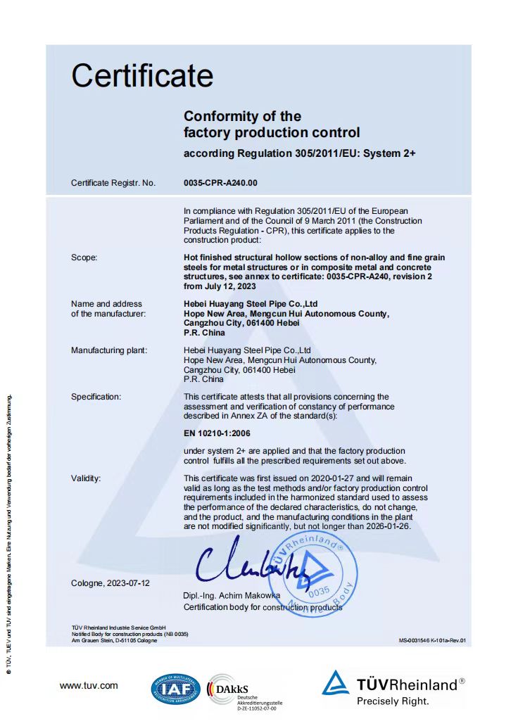 河北華洋鋼管有限公司公司創(chuàng)建于2005年,注冊(cè)資金5億元,公司占地面積1000余畝,固定資產(chǎn)12億元,年銷售收入近100億元,現(xiàn)有員工600余人。“華洋牌"高頻直焊鋼管被評(píng)為“河北省名牌產(chǎn)品”,年生產(chǎn)能力可達(dá)260萬噸,2024年河北華洋鋼管有限公司榮獲河北省百?gòu)?qiáng)民營(yíng)企業(yè)(69位),河北省百?gòu)?qiáng)制造業(yè)(57位)榮譽(yù)稱號(hào)。